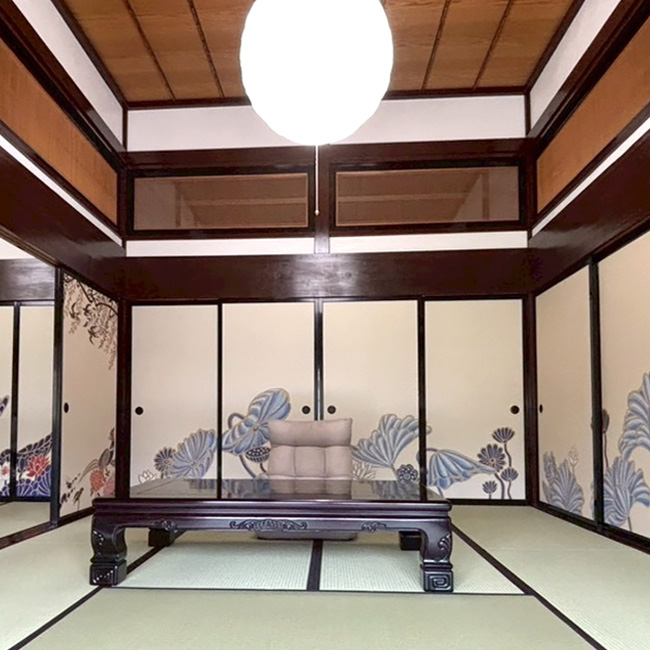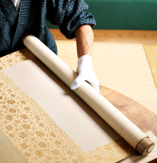 昔ながらの純和風で美しい物から、現代の創作表装で奇抜な物まで様々な作品を手掛けております。修復、寺院などの昔ながらの工法、近年古い着物を再利用して掛軸やどこにでも飾ることの出来るミニ掛軸なども人気です。まさにSDGSですね。