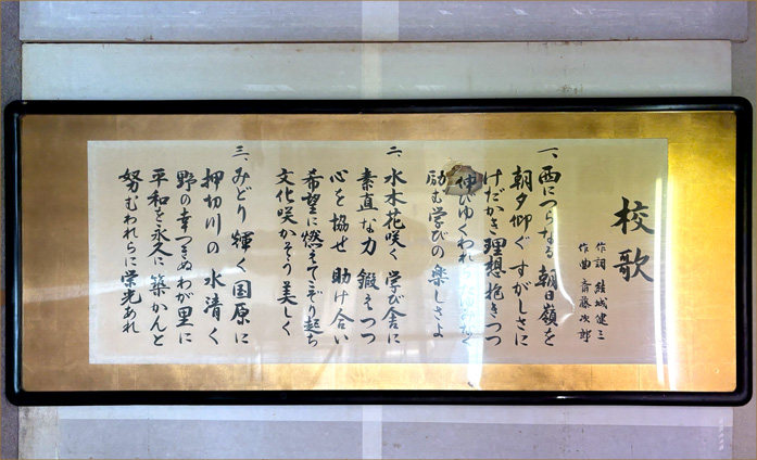 校歌の歌詞パネルを修繕しました