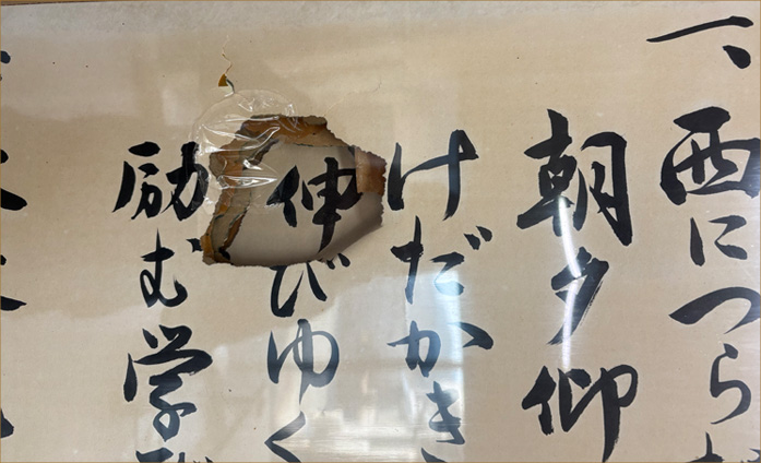 校歌の歌詞パネルが老朽化したので、修復作業を行いました。
